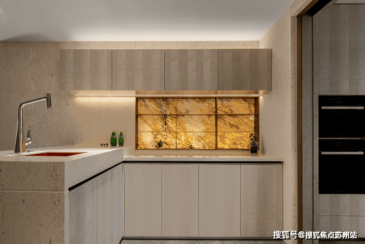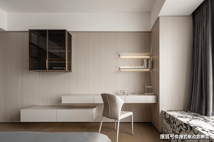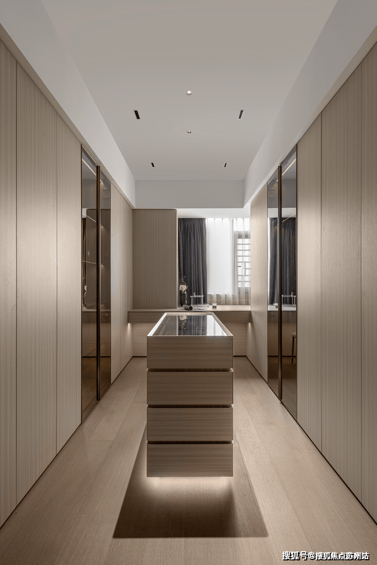 客厅拥有层次分明的划分,运用一体化布局构造平层独特视线。窗口旁布置饮茶室,融入淡淡禅意与日常展开微妙的共鸣。