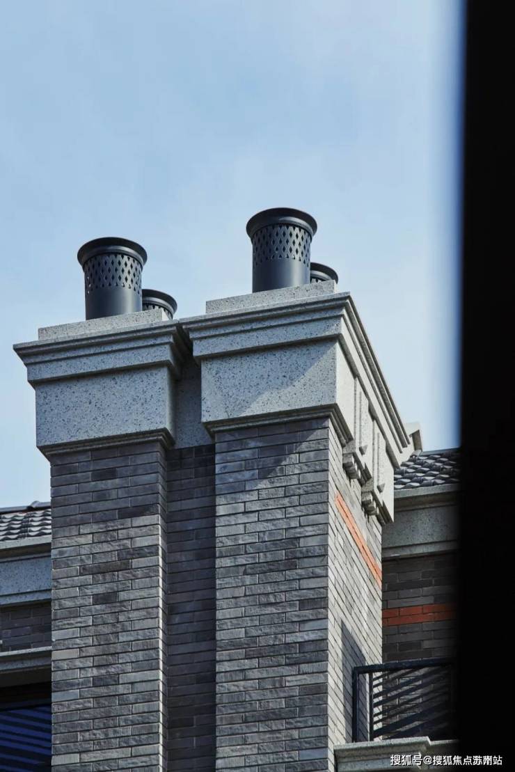 即使在建筑的顶部,也同样彰显着项目对细节的考究。传统的烟囱大多数由砖砌筑而成,为了提升整个建筑的美观,在烟囱的顶部也采用了石材雕花装饰。而为了防止雨水倒灌,更在烟囱内设置了挡雨板,让艺术与生活需求融合。