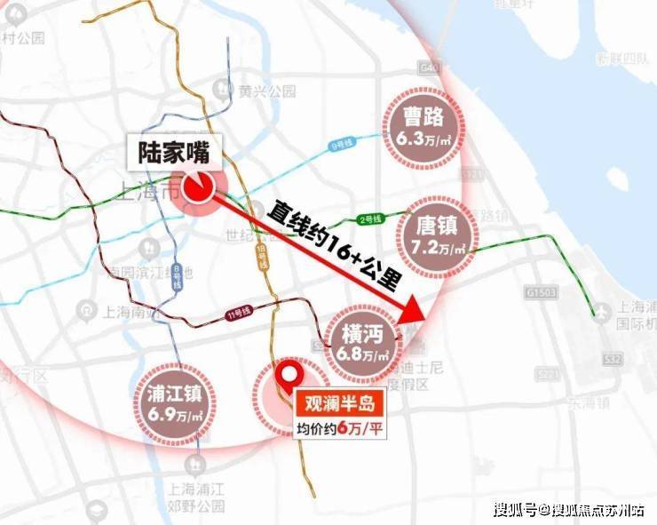 以陆家嘴为圆心,半径16+公里沿线通地铁板块的房价格局,唐镇、橫沔、浦江镇百平米3房总价都在700万左右,配套能级相对落户的曹路联动价也要6.3万/㎡。