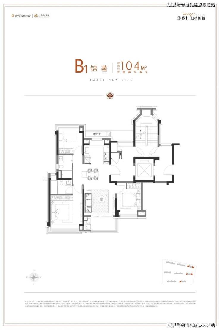 但保利虹桥和著的建面约104㎡3房2卫,却很好的解决了以上所有问题: