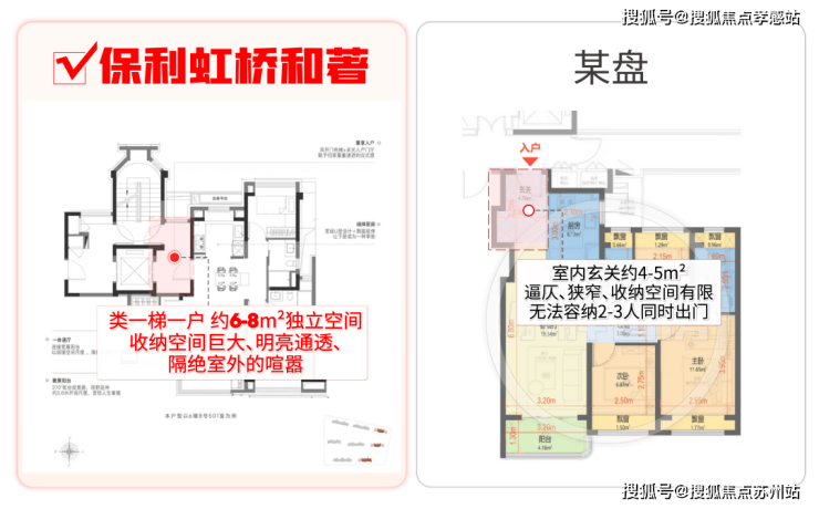 相比其他百平米3房玄关的逼仄、收纳空间少的问题,保利虹桥和著本次所有户型都做到了类一梯一户,享全明独立电梯厅: