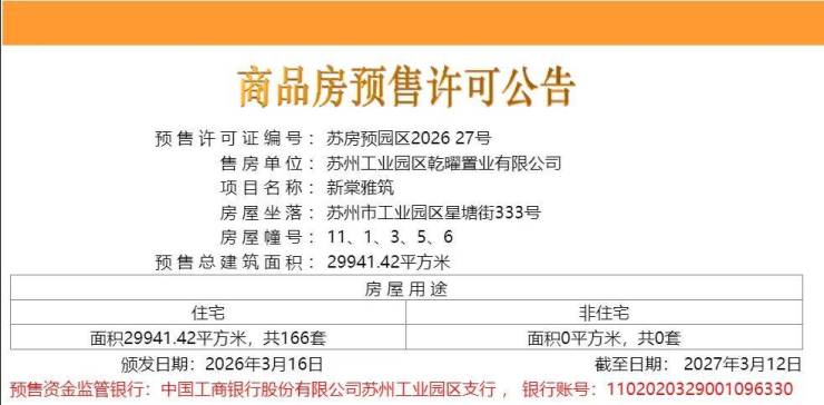 建屋·新棠玥,即斜港置业斜塘86号地块项目,即,苏地2023-WG-86号地块项目,位于工业园区星塘街西、独墅湖大道北,是2023年11月29日,斜港置业以底价150039万元竞得,成交楼面价22000元/平。