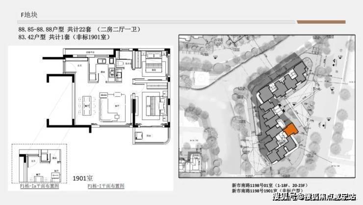 F地块1单元&3单元得房率约73.6-74.6%;