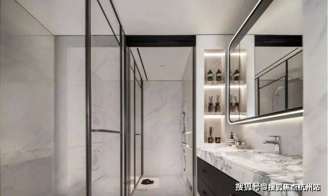 酒店式四分离公卫:实现独立洗漱台、卫生间、淋浴间、洗衣区互不打扰,将酒店化体验引入住宅,早高峰时期也能做到出入有序。