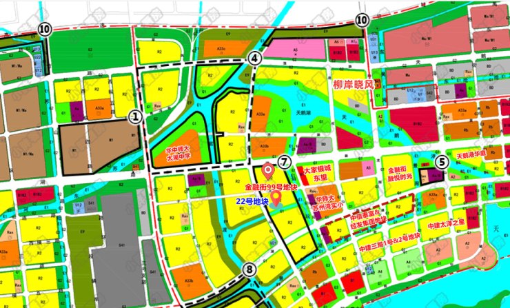 周边界面来看,也是比较不错的,北面是建设中的住宅小区金融街融悦沁庭,东面是仙玩港,南面也是河流和规划宅地,目前还没挂牌,西面同样是宅地,也没出让。整体来看,未来基本都是住宅小区也生活配套,居住氛围比较好。