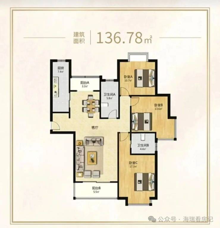 4号401室建面约136.78m²3房,总价10169045元