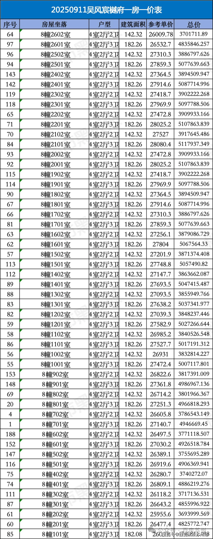 一房一价表如下,建议收藏