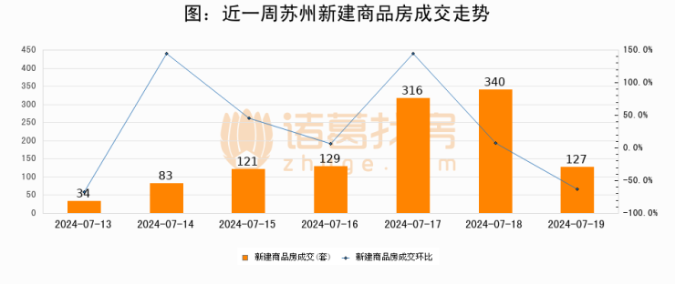 【苏州成交日报】07月19日新房成交127套、二手房291套;涨价房源144套