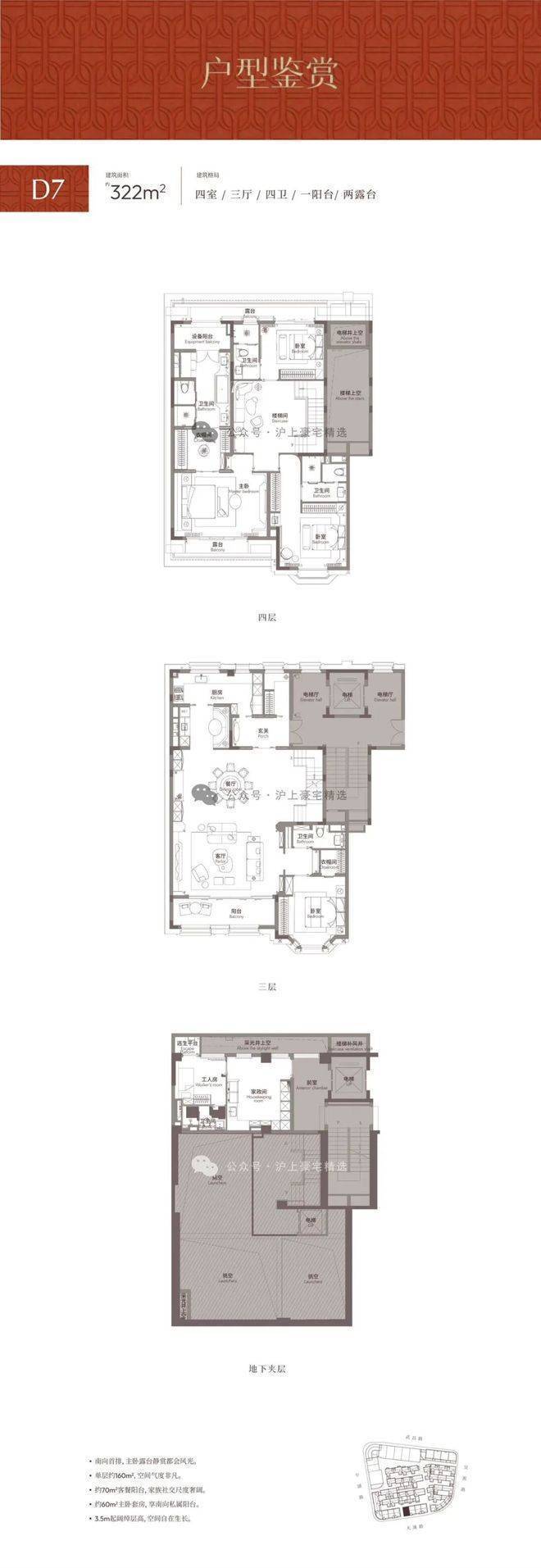 三层约3.5m、四层约3.6m层高,纵向空间感更显阔绰,舒居尺度跃然呈现。