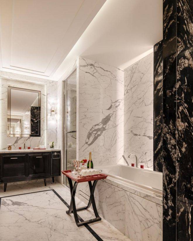 从巴西进口的紫点金麻花岗岩,紫色光彩点缀于金色奢石之上,以古朴温润的质感,嵌入外滩天际,在日光下熠熠生辉、恬静优雅构建出富有地标作品感的高级美学。