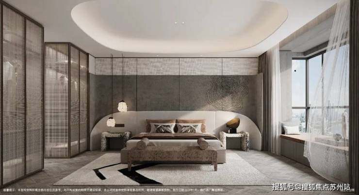 在室内精装上,澜庭·雅致采用木饰面、金属线条、岩板等材料,并采用如圆弧形吊顶等精心设计,相较成本、工时,更多考虑装修效果与品质,追求完美。