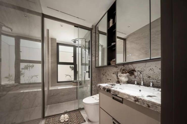 主卧豪华的套房设计,不仅南向有转角飘窗,甚至北侧卫浴都做了转角飘窗,空间延展度超强!