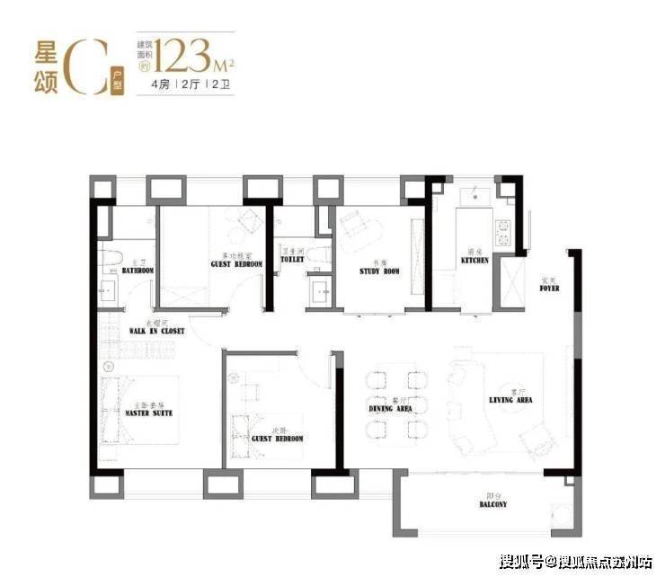 建面约123-129㎡真四房,这个户型的南向面宽和尺度感堪比一般的别墅。