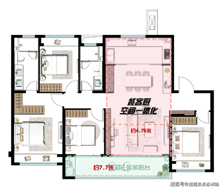 户型也非常纯粹,就128/143㎡两个户型,全是大4房,得房率约82%,LDKG一体化设计,通顶玄关柜、主卧衣帽间设计、U型厨房、卫生间整墙镜柜、多功能阳台、全景飘窗……居住舒适度绝佳。