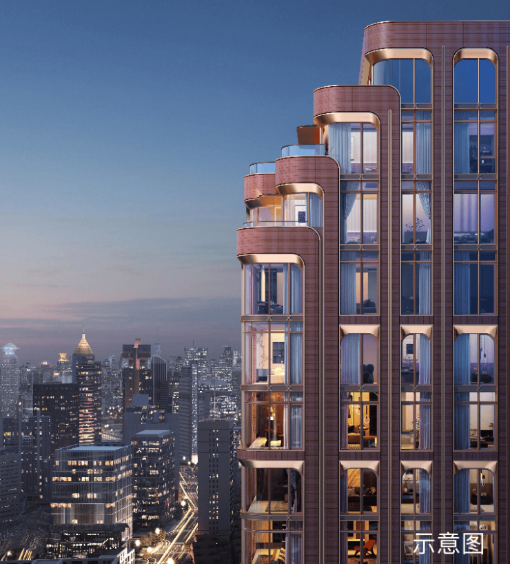 在本次推出的高层产品中,极具标志性的城市天际封面是一大亮点.设计团队为此深入历史风貌区,借鉴了海派经典建筑中的Art-Deco风格形制,砖红立面纹理及风貌线条色泽,并将这些美学符号向上生长.建筑顶部还巧妙借鉴海派建筑的收分手法,塔冠部分逐级向上退台,处处皆倾注匠心.