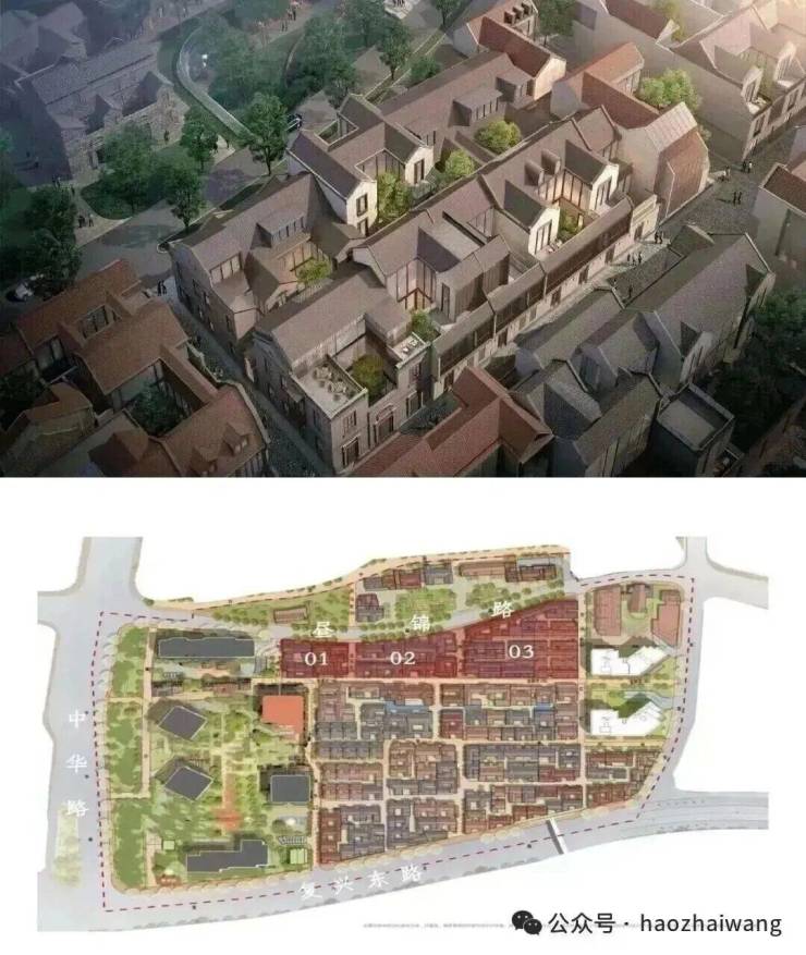 北区地块区域主打保留建筑,基本为2-3F的联排和合院.