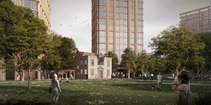 方案中规划的昼锦路目前还未东延至此,未来建成后,项目内将开辟昼锦路和方浜中路之间的公共绿地以及城市开放空间,着力打造成富有海派文化底蕴的历史风貌保护和城市更新经典片区.