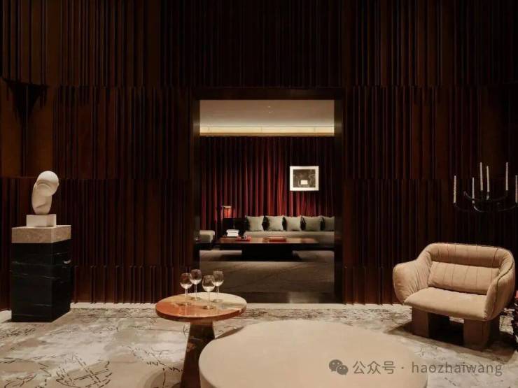 ▪️酒窖深处是私享雪茄室,白色皮质屏风的柔与金色雪茄柜的刚形成张力.打开柜门,松木的香味悄然释放.