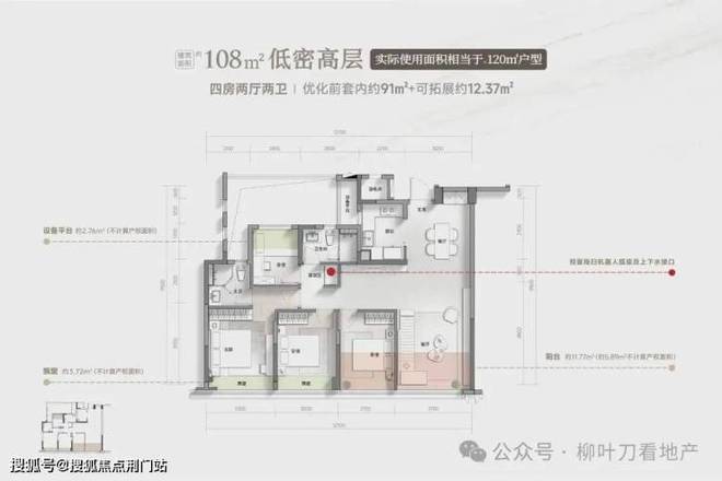 建面约108㎡四房两厅两卫