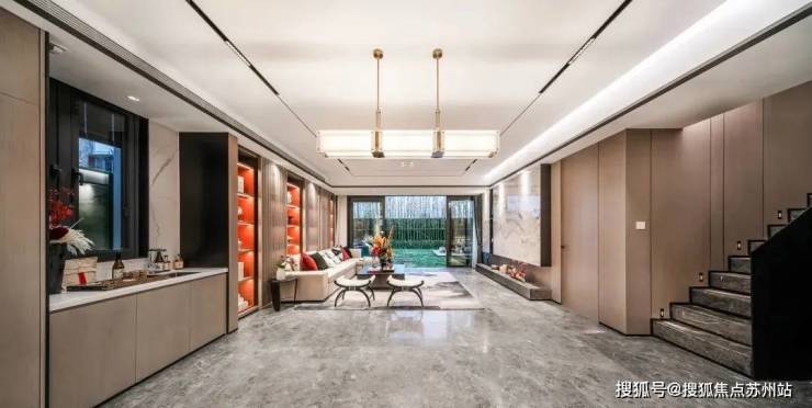 2、将近80㎡的餐客厅空间。我相信,很多人家室内实际使用空间,也不过80多㎡,足以见得16号地的空间尺度,是对标一线豪宅。