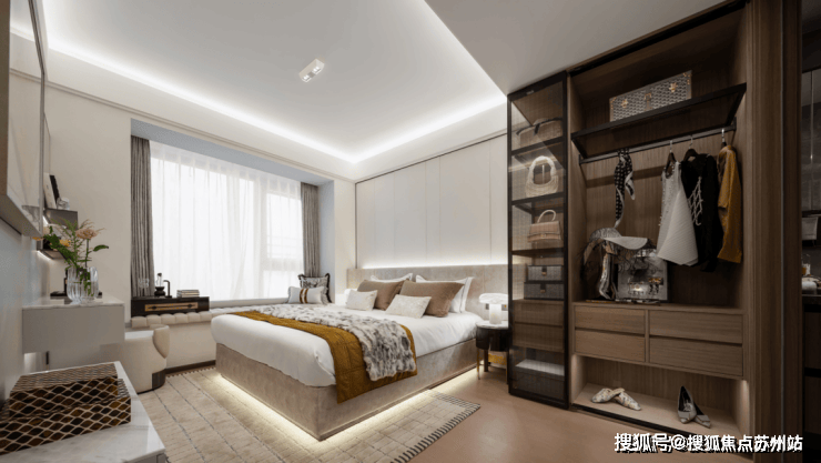 无论建面约88㎡还是约98㎡户型,主卧的北向,都有一个约2.4米开间的设置,不仅可以当书房使用,也可以根据家庭人口的需要设置成儿童房或者客卧。88平样板房实景图