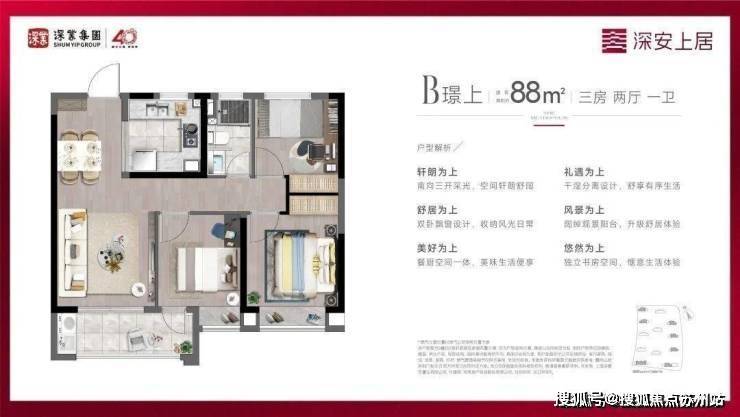 现在深业·深安上居售楼处电话:400-8787-554建面约88㎡户型就实现3房功能性,建面约98㎡3房户型更实现主卧套房设计!既满足市场主流需求,又带来进阶改善品质。