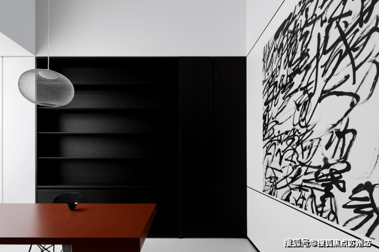 私密场域依旧保持静谧,黑白色基础上搭配了更多的色彩,例如深棕、浅紫等,艺术品的衬托深邃迷人,热络了家的氛围。