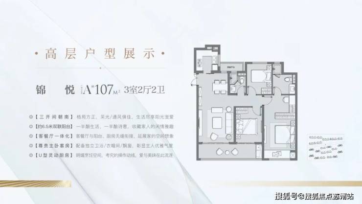 锦悦 高层 107㎡ 户型:三室两厅两卫