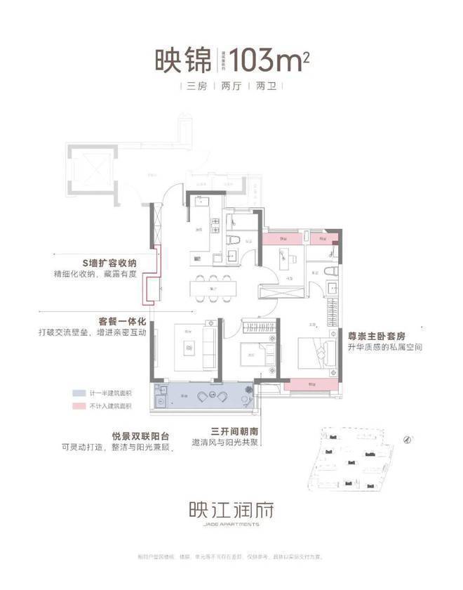 建面约103㎡3房2厅2卫边套户型