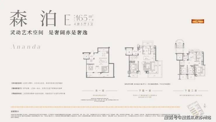 差异化户型,体现人生不同诗逸。上叠感受双露台的自然静谧;中叠无界横厅与阳台飘窗的家庭奢阔聚会场域;下叠充满光感的地下自由空间……