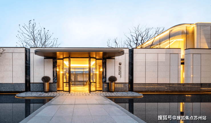 项目建筑立面延续现代轻奢建筑风格,采用弧形铝板、玻璃幕墙,通过曲线微弧的工艺,极大程度地丰富了建筑层次,彰显高级的质感。这样的工法需要更高昂的建筑成本以及大量的时间成本。