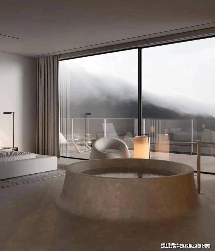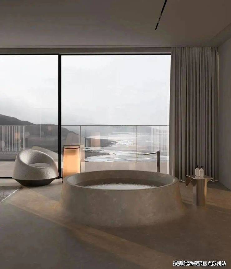The bathing area is closely adjacent to the bedroom, and the unique bathtub design is like the embodiment of a volcanic island, allowing people to feel the embrace of the sea while bathing, feeling relaxed and happy.