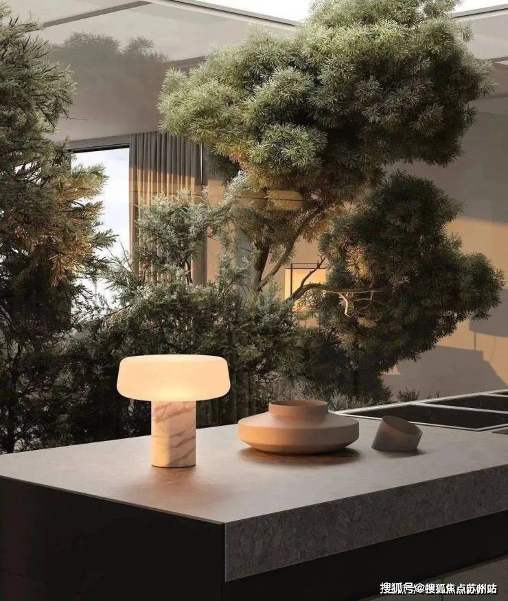 中央的玻璃隔间更是惊艳,四面透明玻璃柜内茂盛的松树宛如自然界的精灵,为家中带来一股文雅之息。这处大平层,不仅是一个居住空间,更是一种生活态度的完美诠释。