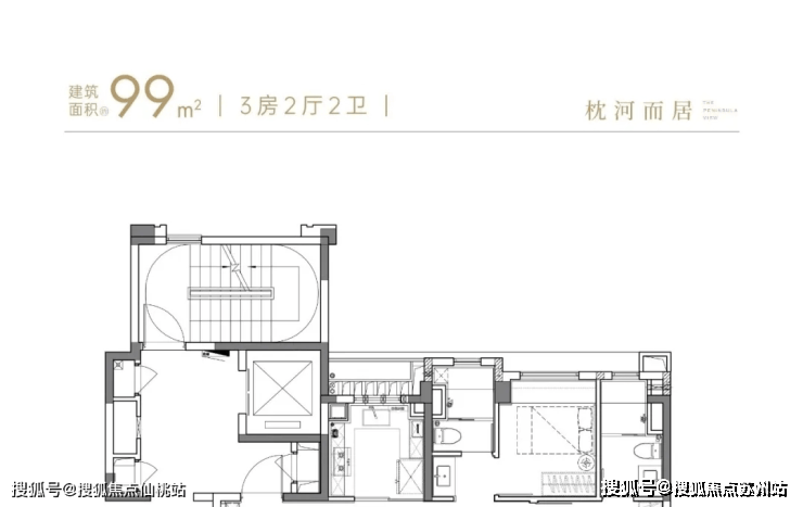 建面约99㎡滨水高层户型方正,功能性与尺度感兼得,在保证采光的同时,呈现开阔的空间场景。