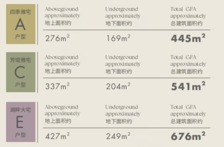 湖滨四季二期户型建面约445 - 676㎡。 最让人惊艳的是,这里的每一户都拥有大花园!花园平均面积约400㎡,最大约759㎡。 户型如下: