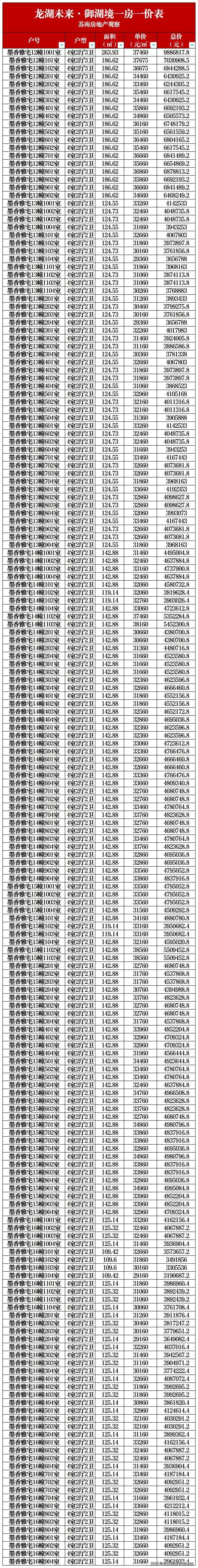 一房一价表如下,建议收藏