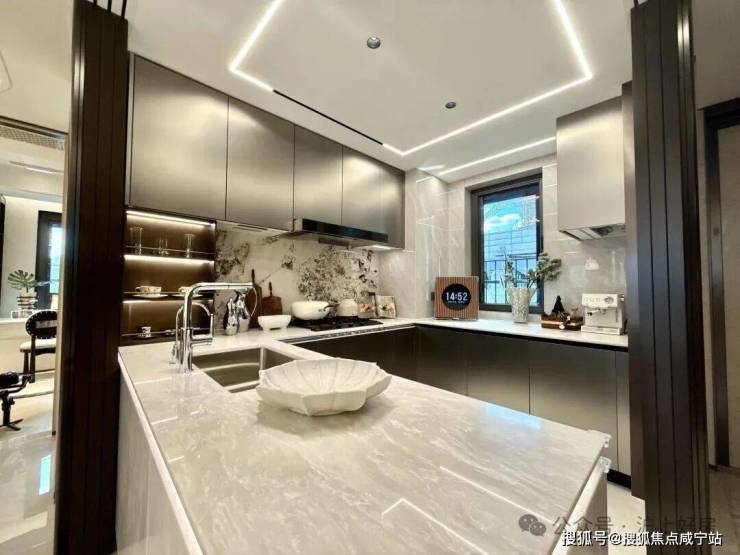 2、装标在线:开放式厨房配置嘉格纳三件套、铂浪高水槽及龙头也是标配,可谓是配置拉满!