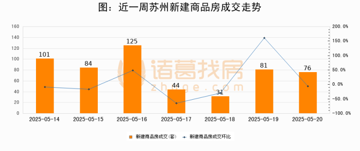 【苏州成交日报】05月20日新房成交76套、二手房266套;涨价房源100套