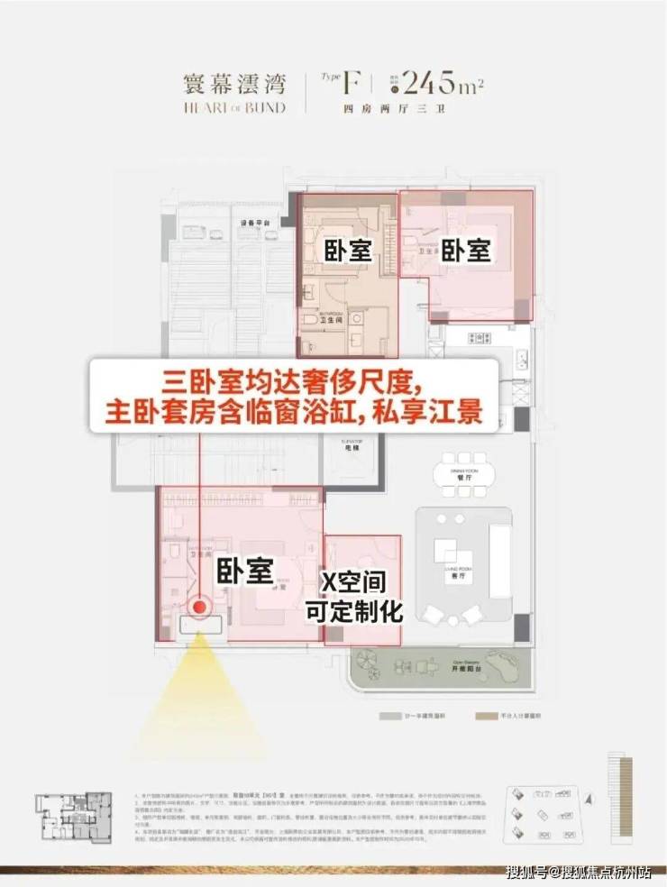 ④三卧全尺度奢适,主卧临窗浴缸瞰江!X空间定制方案可选,实现多场景布置!