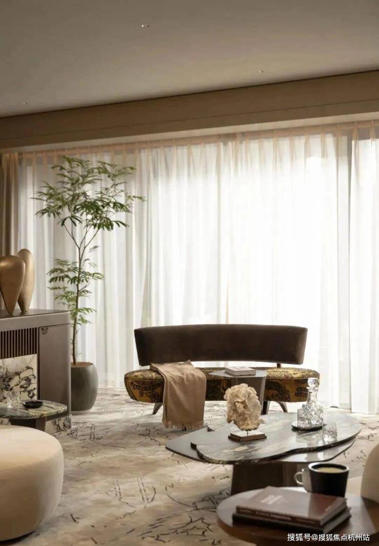 设计背书由问鼎国际大奖的著名设计师吴滨操刀,延续其“汤臣一品5亿顶复”的“摩登东方”理念。以黄浦江为灵感,营造“阅尽千帆后的宁静与松弛感”。通过8.5米南向宽厅、270°环幕玻璃、无冗余装饰的减法美学,让空间如江面般舒展,视野极度开阔。