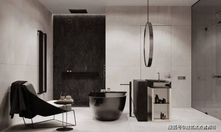 非常现代的洗浴间,用大面积的白色搭配了黑色的浴缸和镜子边框,整体不失单调,却非常奢华。