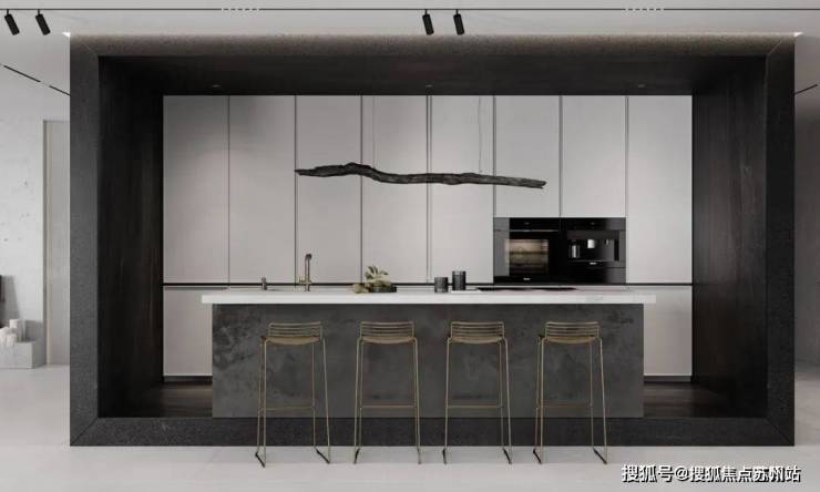 餐厨的设计仿佛是一件艺术品也像是一间高档的餐厅。线条简单带点工业风的设计。开阔的餐厨,一体化的格局增添了视觉的延伸效果。