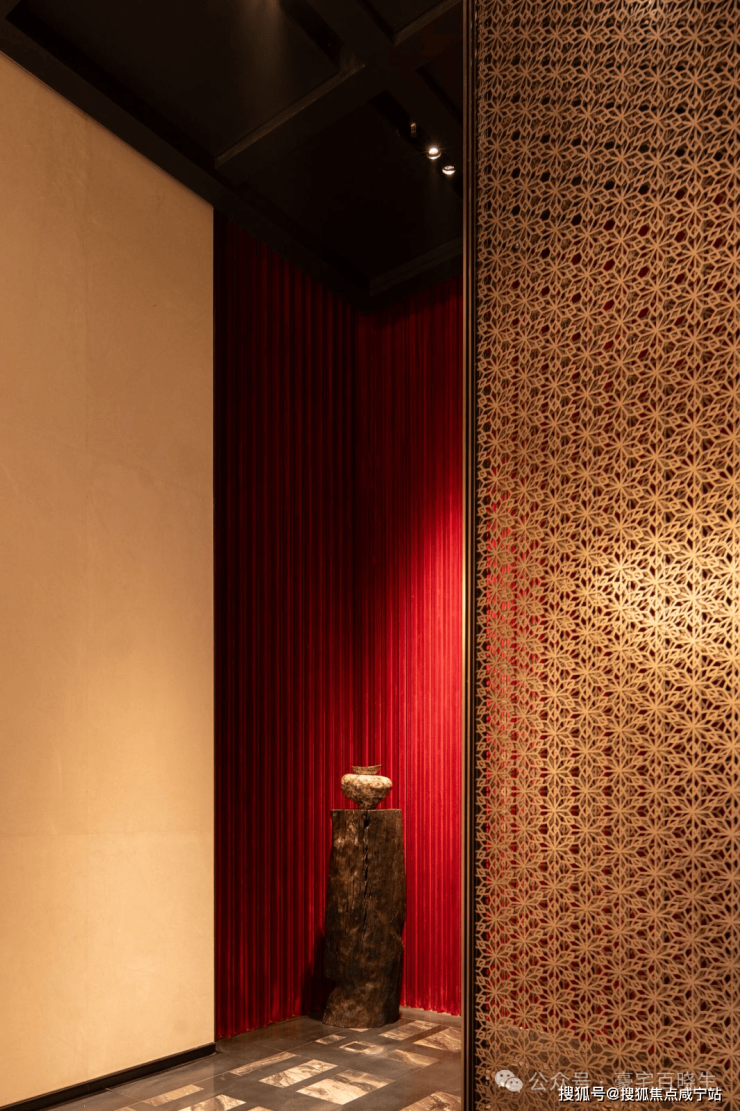 l又如拾玖间地下会所水吧背景墙的景德镇冰裂瓷,近千度窑火烧制,诉说时间的答案;会所中大量软包皮革,采用雕花皮革纹,道道工序,样样精心,结合当代摩登美学,营造值得经久回味的本色.