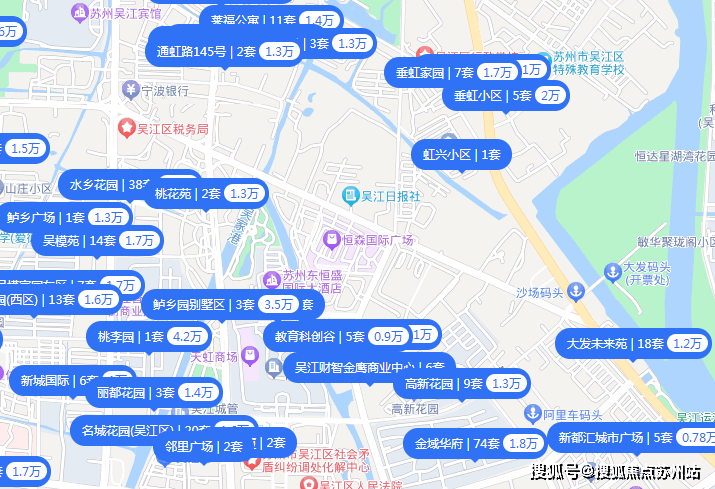 项目位于吴江太湖新城板块,两面环水,南侧紧邻笠泽文体广场、恒森国际广场,东侧不远处是运河公园,周边多个小区环伺。