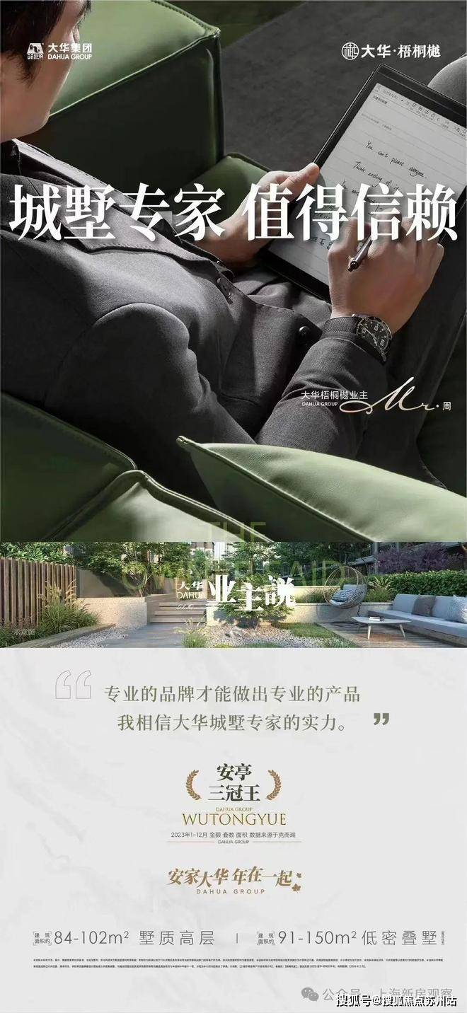 【大华·梧桐樾】大华梧桐樾售楼处营销中心:400-8828-814大华梧桐樾售楼处电话/地址☎:400-882-8814(开发商热线)是大华集团带着深耕嘉定的决心,首入嘉定的第一子,也是大华城墅专家秉承着大华城墅迭新的「墅立四观」、「墅境九制」、「墅居六艺」价值主张。打造的第五代梧桐系城墅作品,旨在赋新大华高端城墅版图,迭新嘉定墅居享受,开篇一座嘉定城的新传奇。