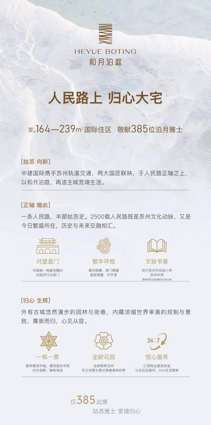 【和月泊庭】售楼处电话400-8673-567中建与苏州轨交联合开发,位于姑苏区,主打高端住宅,精装交付,稀缺地段,配套齐全,预计2026年交付。