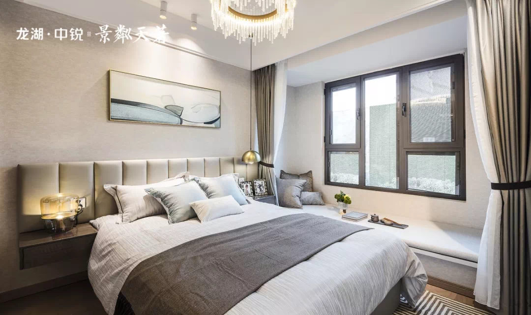 南侧卧室以约0.33米超低的宽景飘窗,扩大室内空间感,营造开阔格局,丈量舒适生活。