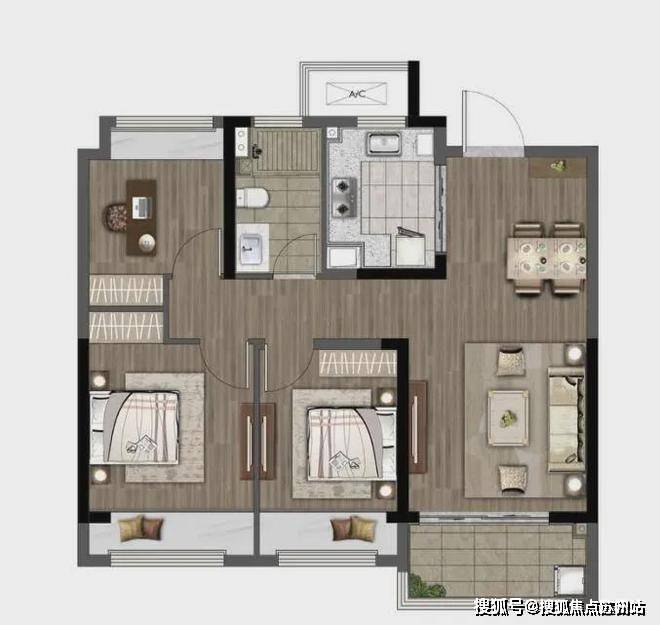 115户型,三室两厅两卫的户型设计,延伸不同家庭结构的需求.